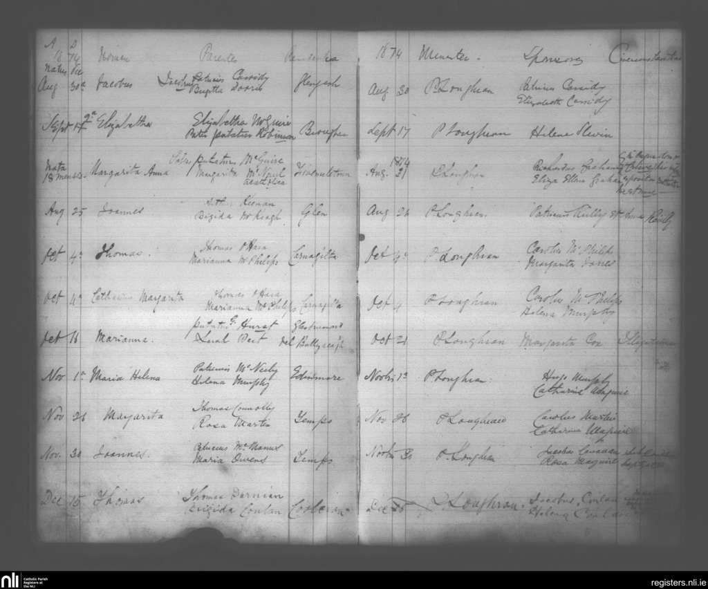 Tempo; County of Fermanagh; Diocese of Clogher. Baptisms, Aug. 1874 to Dec. 1874