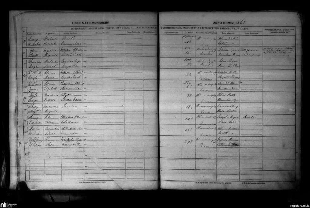 Roslea; County of Fermanagh; Diocese of Clogher. Marriages, Sep. 1862 to Nov. 1862