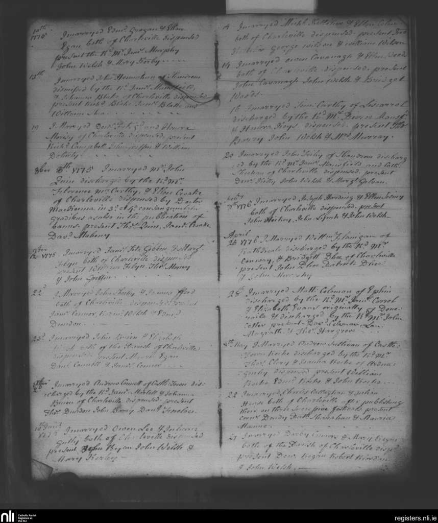 Charleville; County of Limerick, Cork; Diocese of Cloyne. Marriages, Aug. 1775 to May 1776
