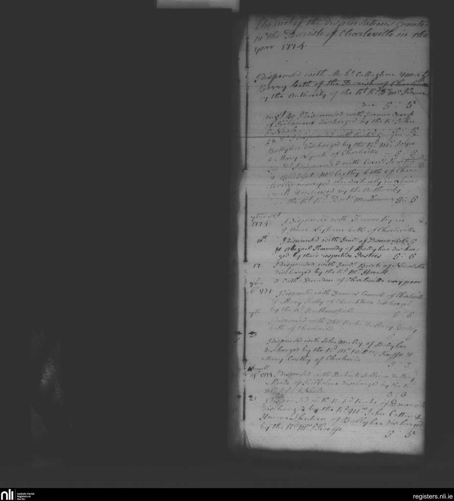 Charleville; County of Limerick, Cork; Diocese of Cloyne. Dispensations, Aug. 1774 to Nov. 1774