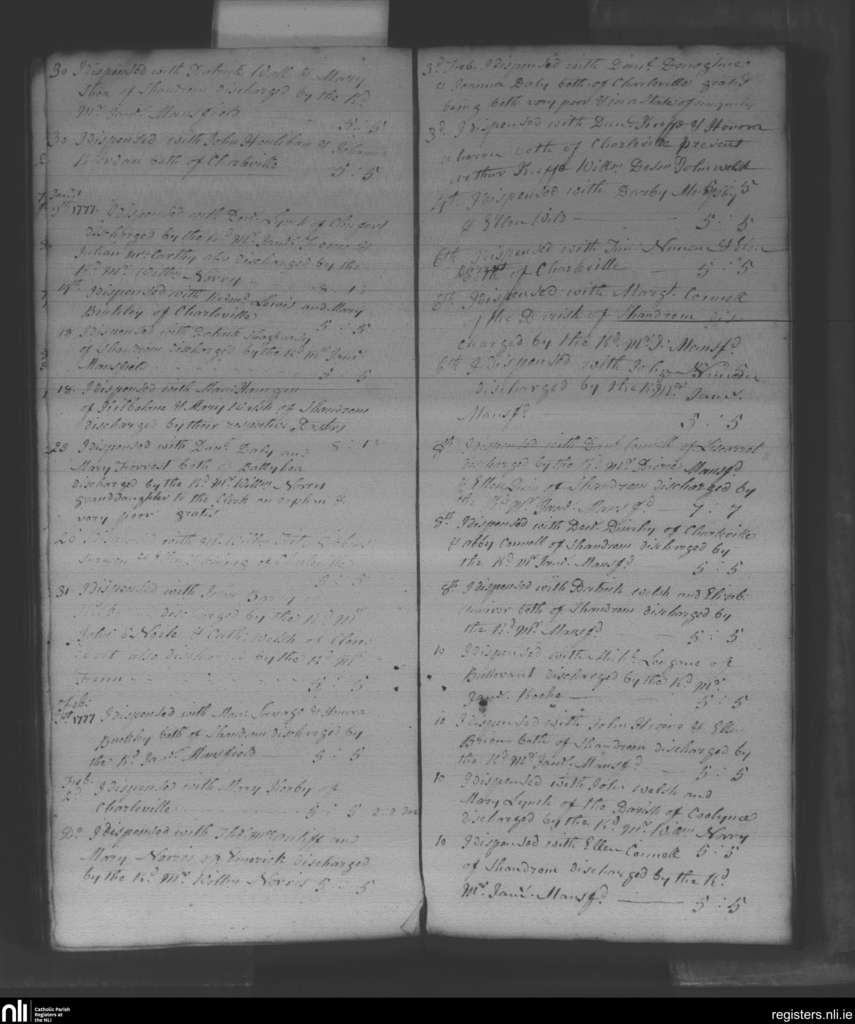 Charleville; County of Limerick, Cork; Diocese of Cloyne. Dispensations, Nov. 1776 to Feb. 1777