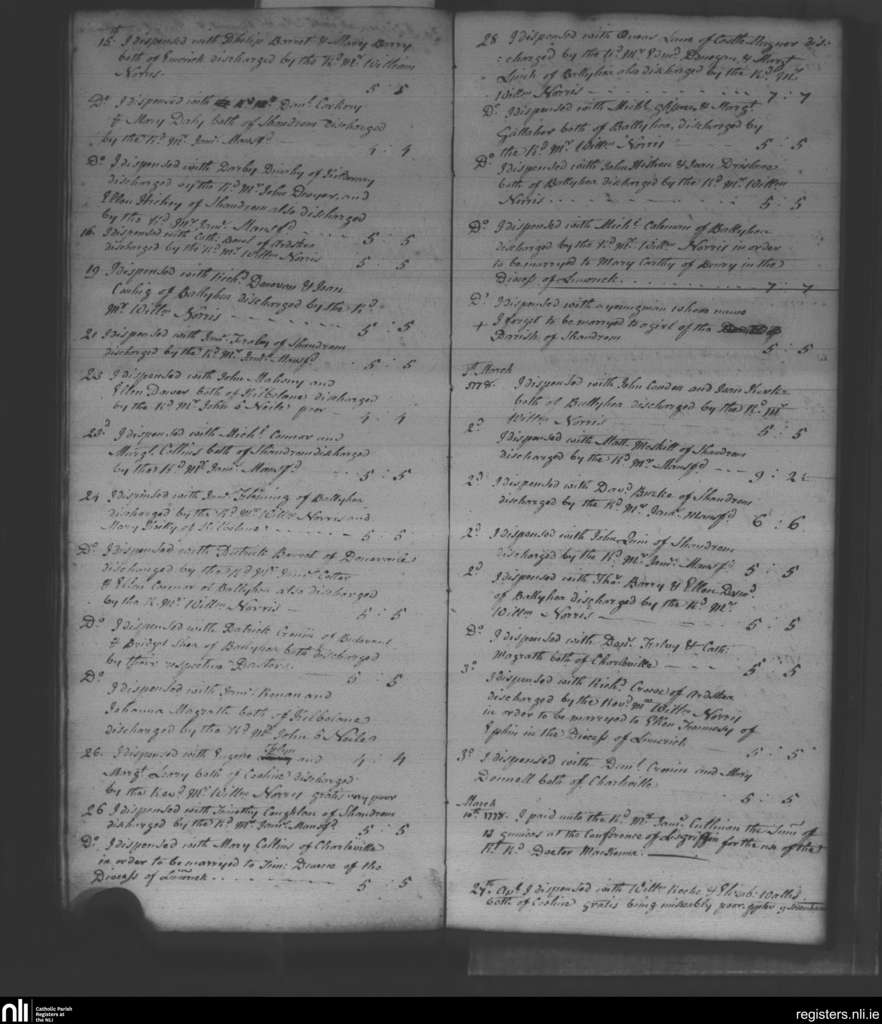 Charleville; County of Limerick, Cork; Diocese of Cloyne. Dispensations, Feb. 1778 to Mar. 1778