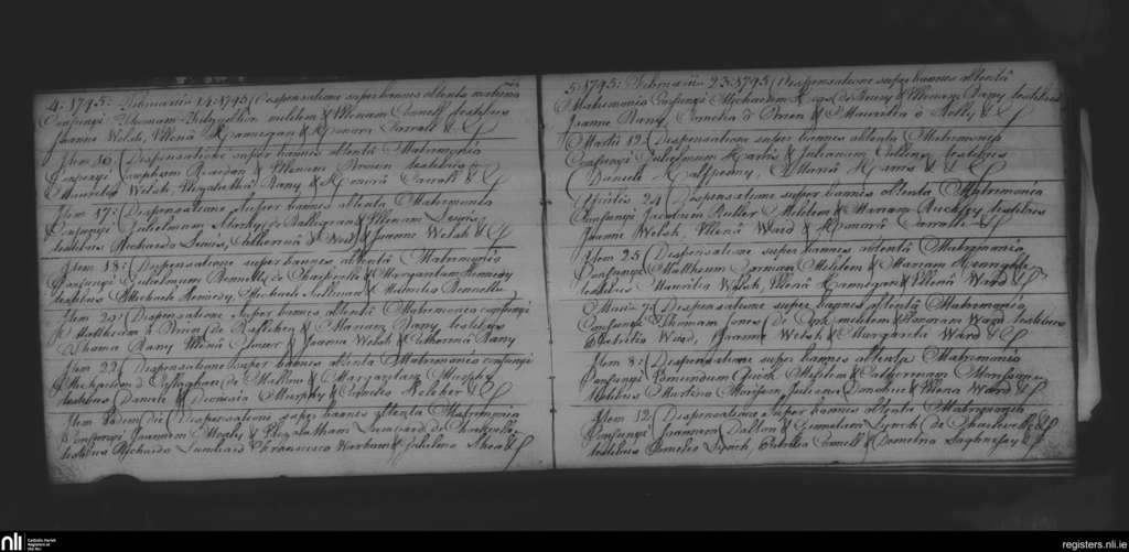 Charleville; County of Cork, Limerick; Diocese of Cloyne. Dispensations, Feb. 1795 to May 1795