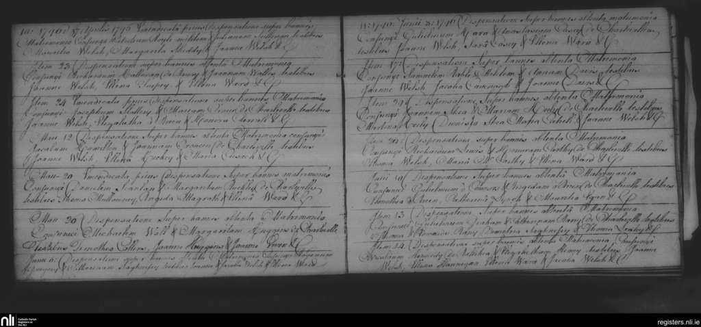 Charleville; County of Cork, Limerick; Diocese of Cloyne. Dispensations, Apr. 1796 to July 1796