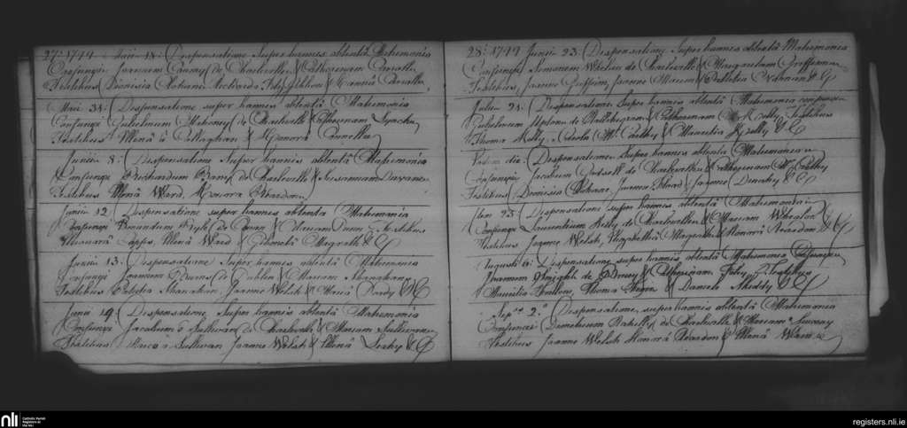 Charleville; County of Cork, Limerick; Diocese of Cloyne. Dispensations, May 1799 to Sep. 1799
