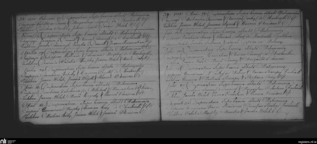 Charleville; County of Cork, Limerick; Diocese of Cloyne. Dispensations, Feb. 1801 to Aug. 1801