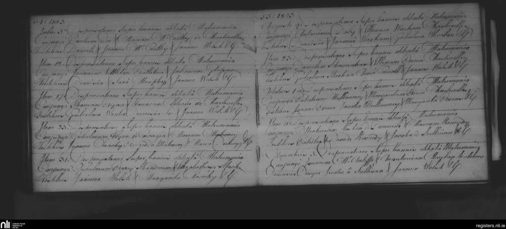 Charleville; County of Cork, Limerick; Diocese of Cloyne. Dispensations, July 1803 to Nov. 1803