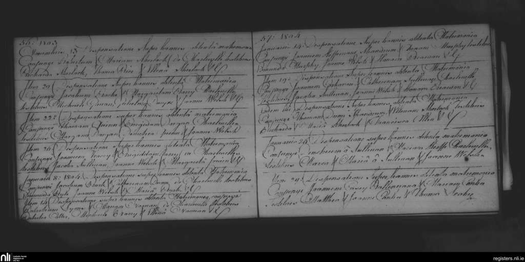 Charleville; County of Cork, Limerick; Diocese of Cloyne. Dispensations, Nov. 1803 to Jan. 1804