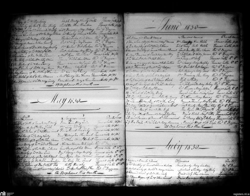 Charleville; County of Cork, Limerick; Diocese of Cloyne. Baptisms, Apr. 1830 to July 1830