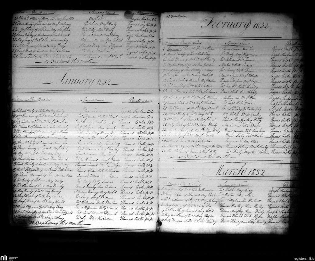 Charleville; County of Cork, Limerick; Diocese of Cloyne. Baptisms, Dec. 1831 to Mar. 1832