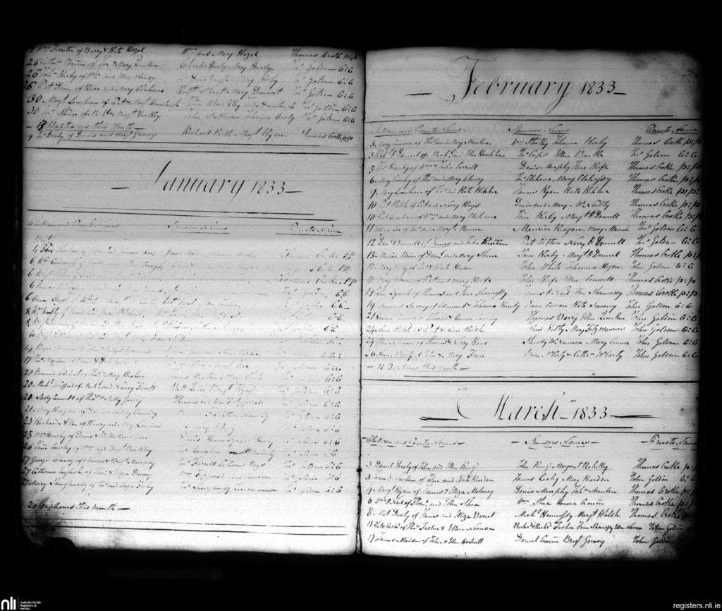 Charleville; County of Cork, Limerick; Diocese of Cloyne. Baptisms, Dec. 1832 to Mar. 1833
