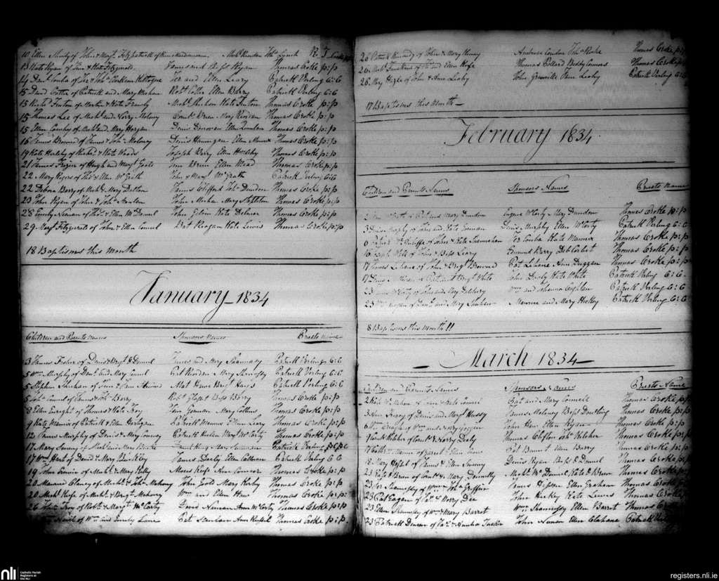 Charleville; County of Cork, Limerick; Diocese of Cloyne. Baptisms, Dec. 1833 to Mar. 1834
