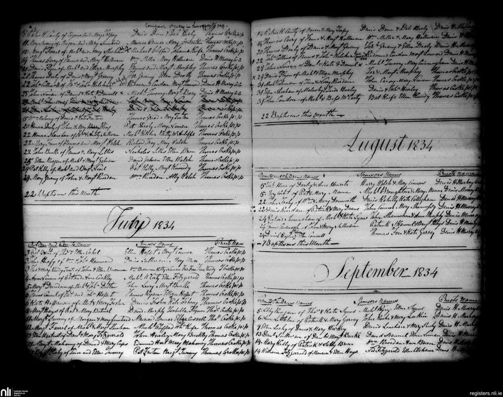 Charleville; County of Cork, Limerick; Diocese of Cloyne. Baptisms, June 1834 to Sep. 1834