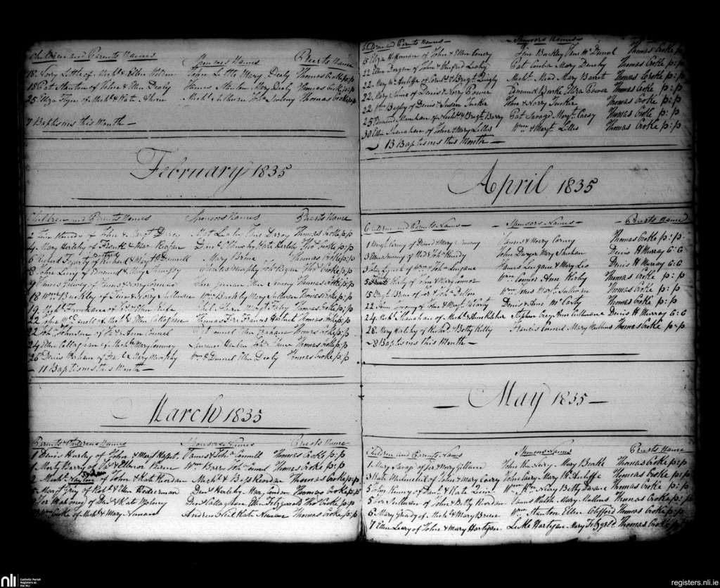 Charleville; County of Cork, Limerick; Diocese of Cloyne. Baptisms, Sep. 1834 to May 1835