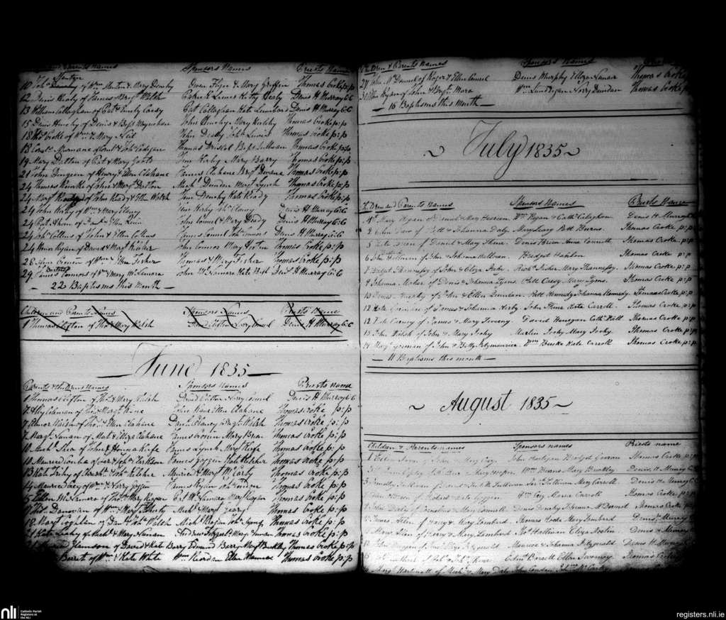 Charleville; County of Cork, Limerick; Diocese of Cloyne. Baptisms, May 1835 to Aug. 1835