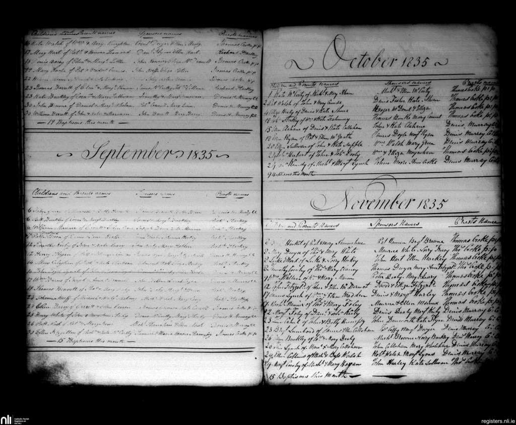 Charleville; County of Cork, Limerick; Diocese of Cloyne. Baptisms, Aug. 1835 to Nov. 1835