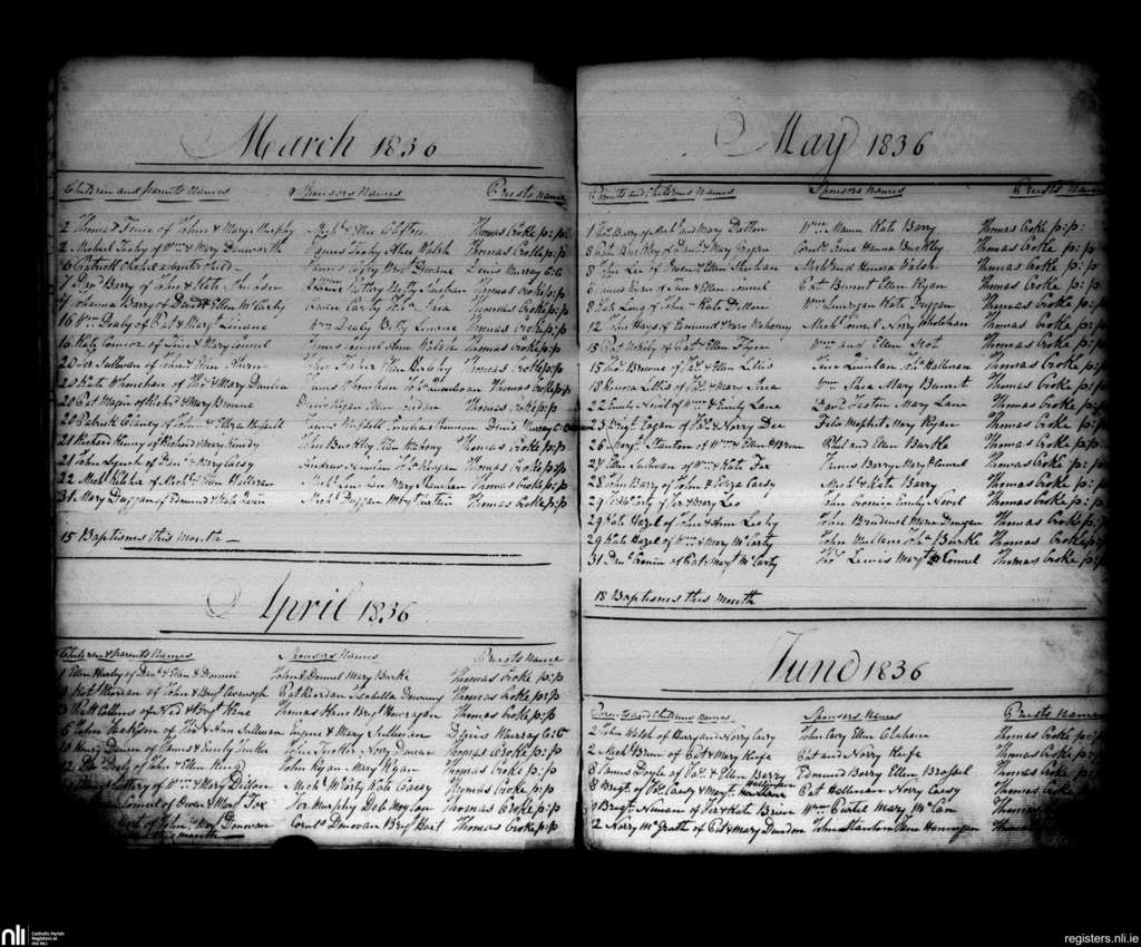 Charleville; County of Cork, Limerick; Diocese of Cloyne. Baptisms, Mar. 1836 to June 1836