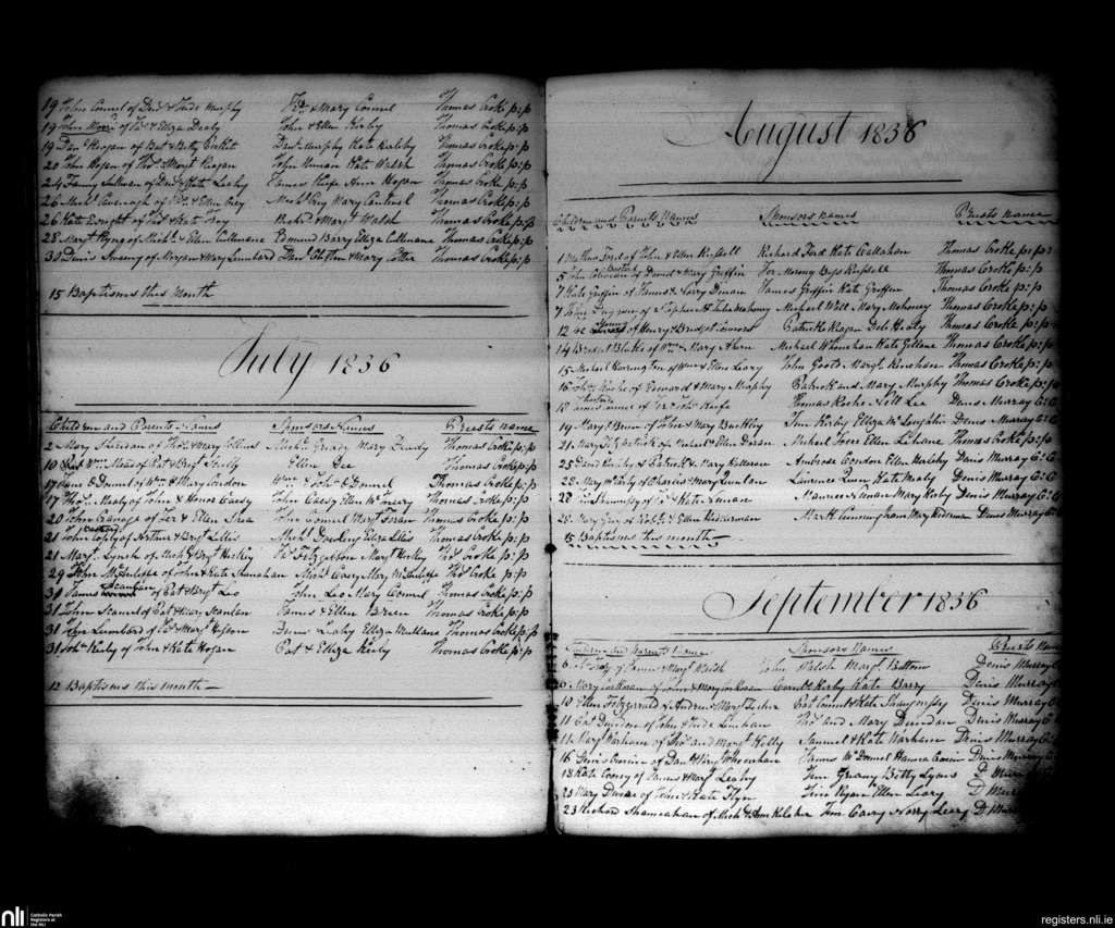 Charleville; County of Cork, Limerick; Diocese of Cloyne. Baptisms, June 1836 to Sep. 1836