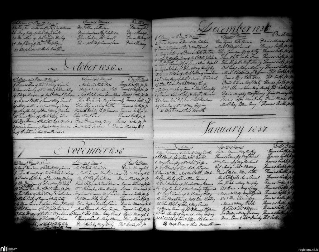 Charleville; County of Cork, Limerick; Diocese of Cloyne. Baptisms, Sep. 1836 to Jan. 1837