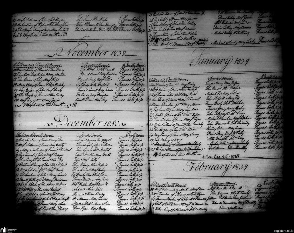 Charleville; County of Cork, Limerick; Diocese of Cloyne. Baptisms, Oct. 1838 to Feb. 1839