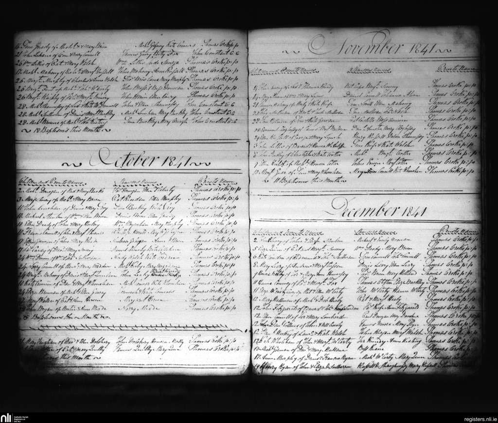 Charleville; County of Cork, Limerick; Diocese of Cloyne. Baptisms, Sep. 1841 to Dec. 1841