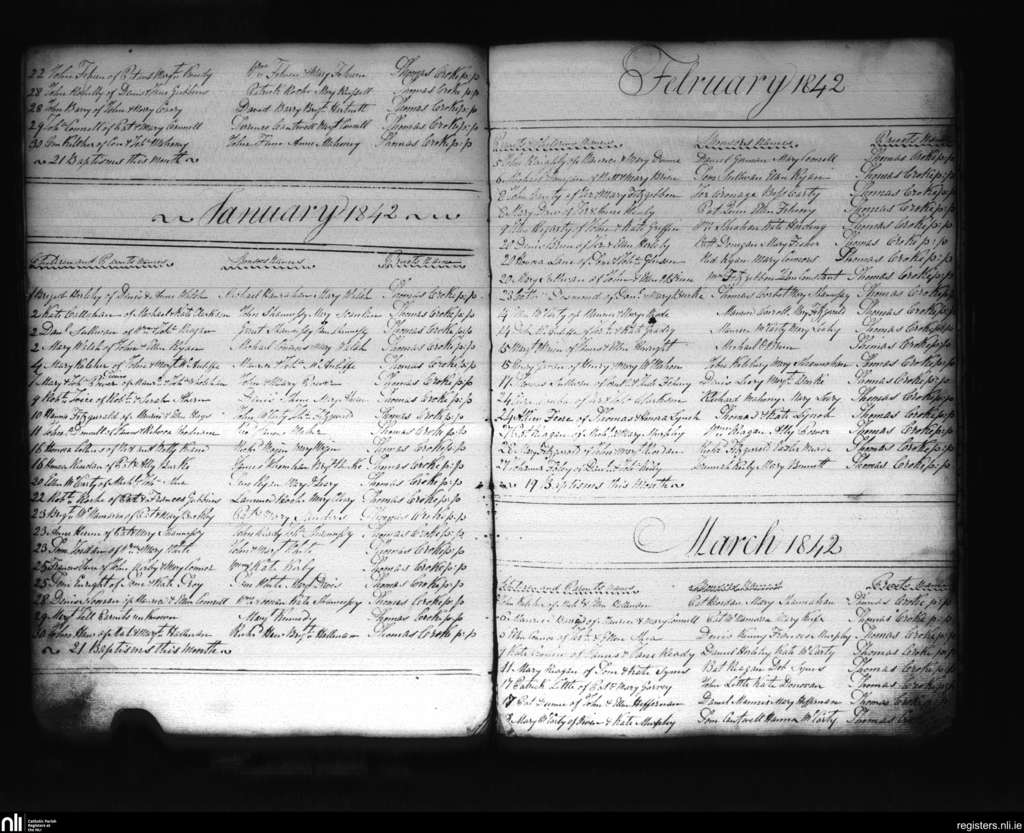 Charleville; County of Cork, Limerick; Diocese of Cloyne. Baptisms, Dec. 1841 to Mar. 1842