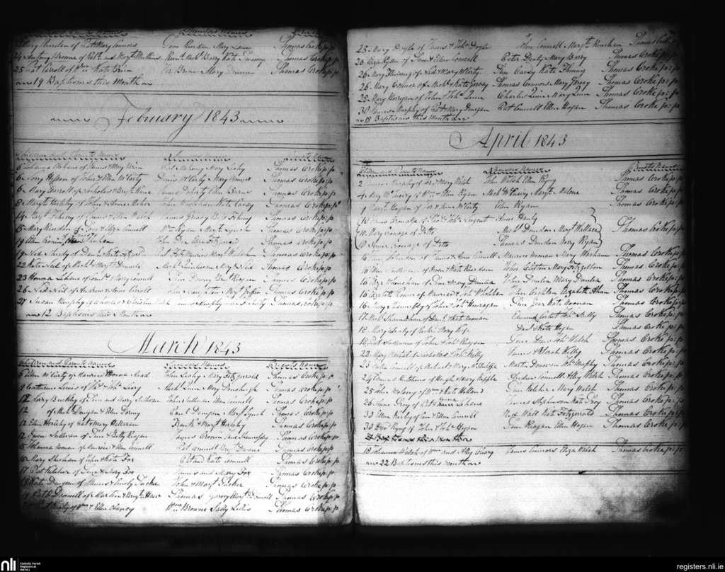 Charleville; County of Cork, Limerick; Diocese of Cloyne. Baptisms, Jan. 1843 to Apr. 1843