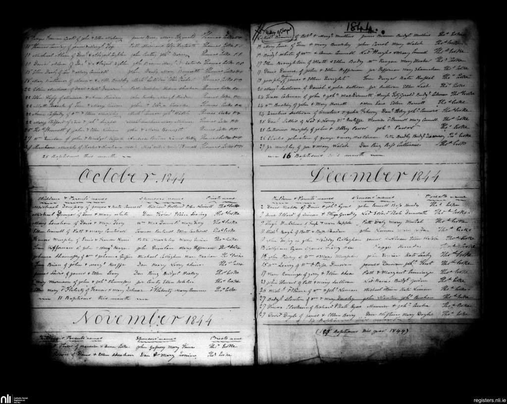 Charleville; County of Cork, Limerick; Diocese of Cloyne. Baptisms, Sep. 1844 to Dec. 1844