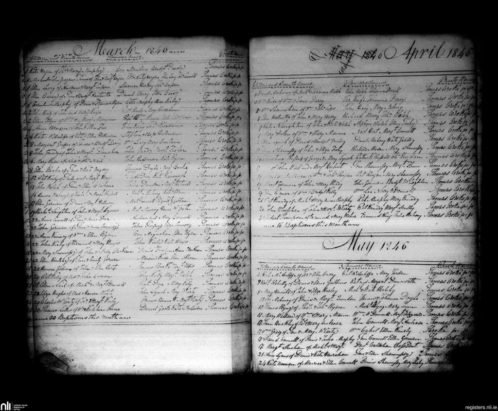 Charleville; County of Cork, Limerick; Diocese of Cloyne. Baptisms, Mar. 1846 to May 1846