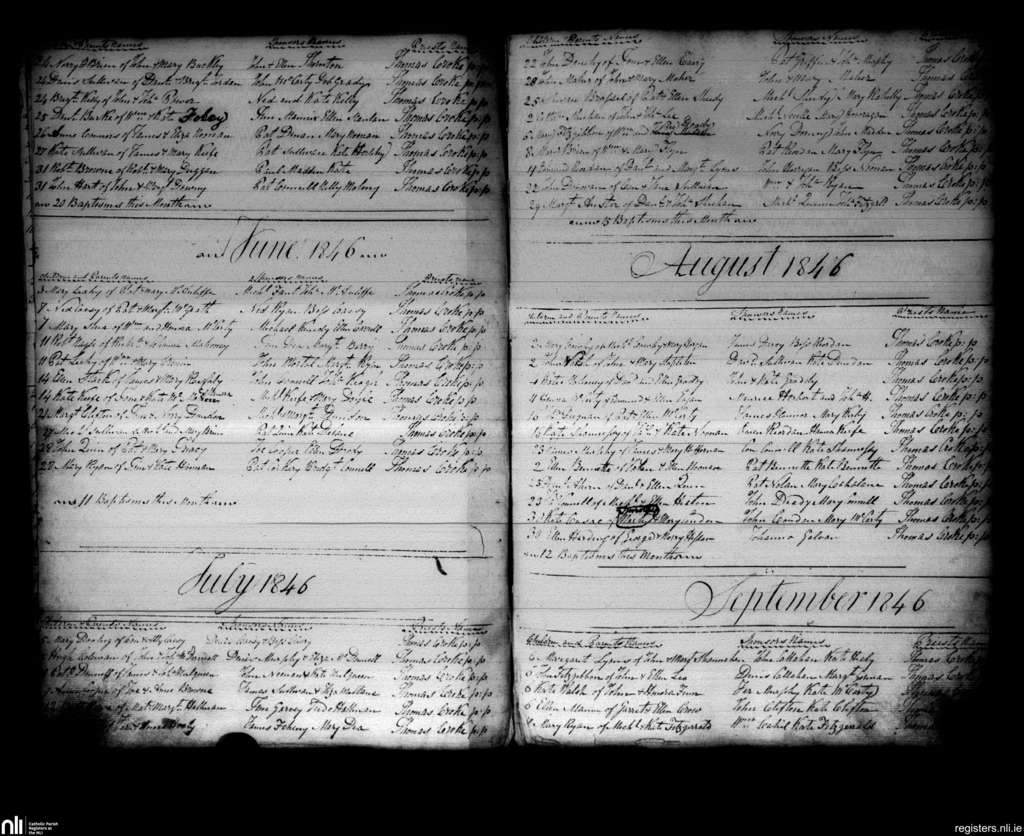 Charleville; County of Cork, Limerick; Diocese of Cloyne. Baptisms, May 1846 to Sep. 1846