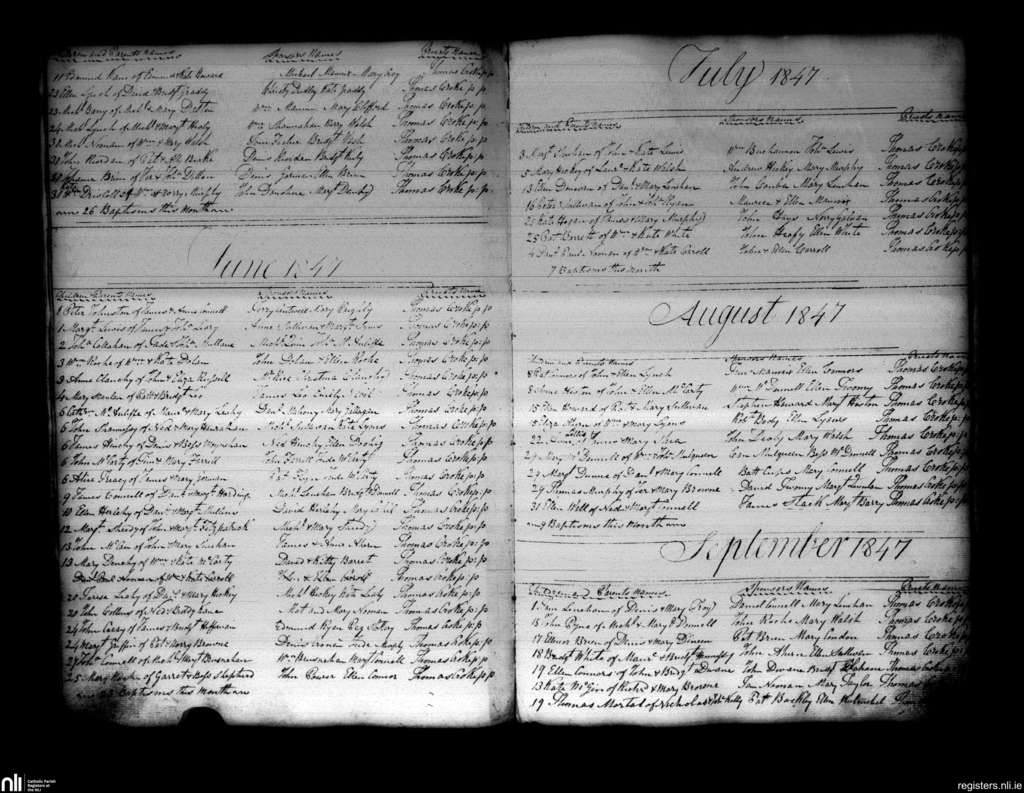 Charleville; County of Cork, Limerick; Diocese of Cloyne. Baptisms, May 1847 to Sep. 1847