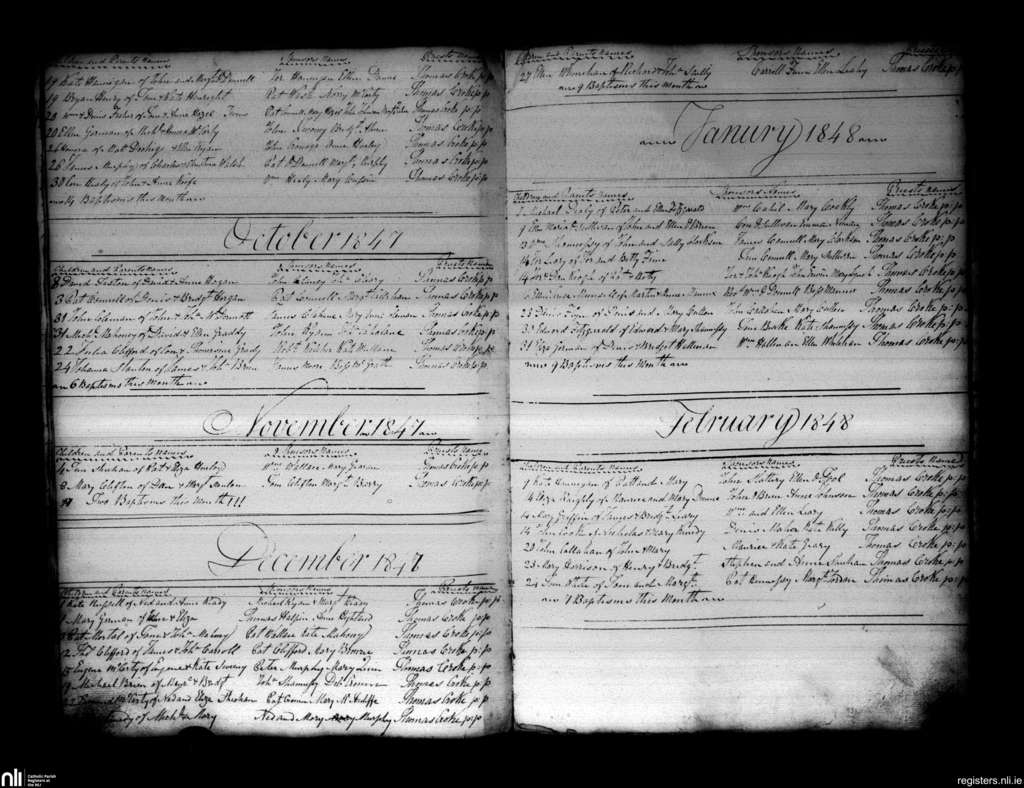 Charleville; County of Cork, Limerick; Diocese of Cloyne. Baptisms, Sep. 1847 to Feb. 1848