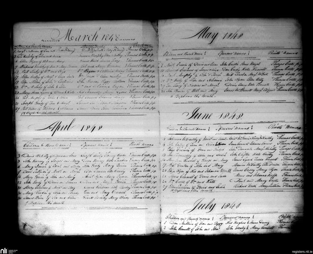 Charleville; County of Cork, Limerick; Diocese of Cloyne. Baptisms, Mar. 1848 to July 1848