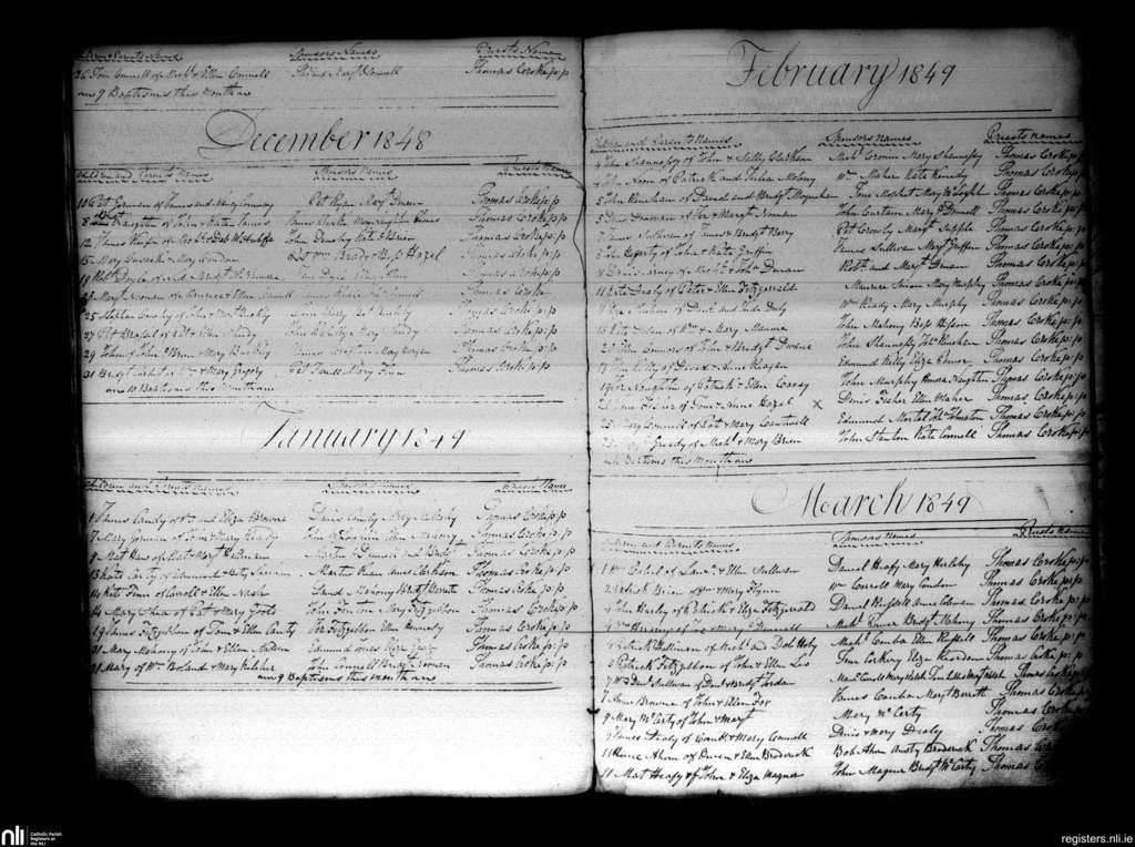 Charleville; County of Cork, Limerick; Diocese of Cloyne. Baptisms, Nov. 1848 to Mar. 1849