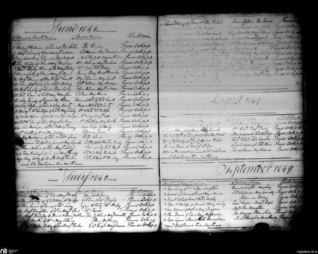 Charleville; County of Cork, Limerick; Diocese of Cloyne. Baptisms, June 1849 to Sep. 1849