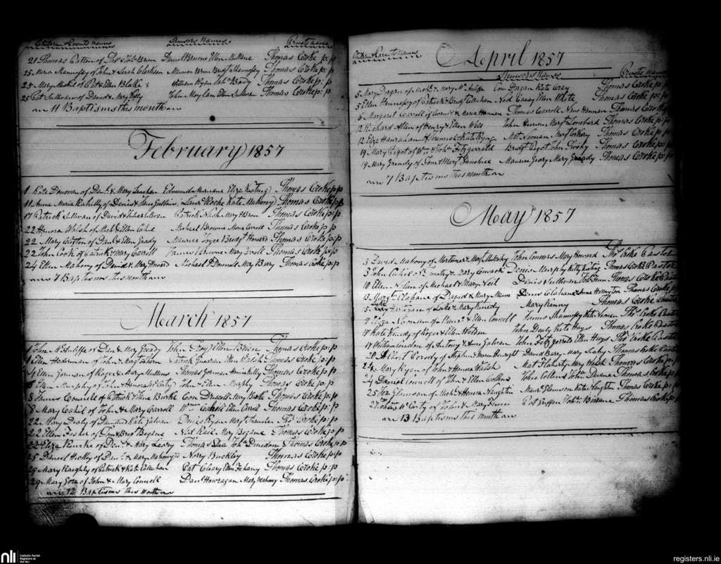 Charleville; County of Cork, Limerick; Diocese of Cloyne. Baptisms, Jan. 1857 to May 1857