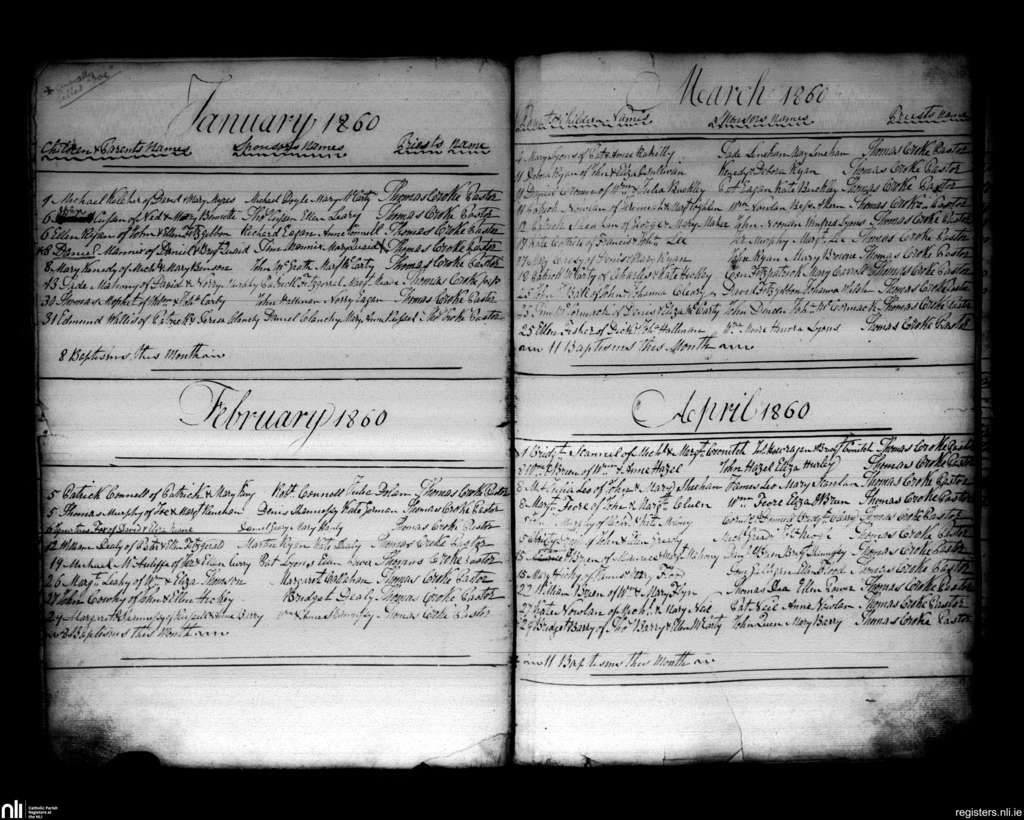 Charleville; County of Cork, Limerick; Diocese of Cloyne. Baptisms, Jan. 1860 to Apr. 1860