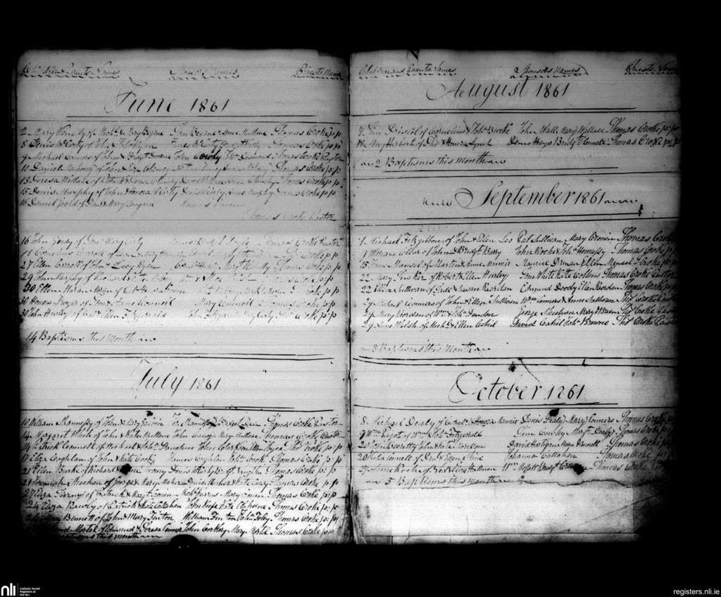 Charleville; County of Cork, Limerick; Diocese of Cloyne. Baptisms, June 1861 to Oct. 1861