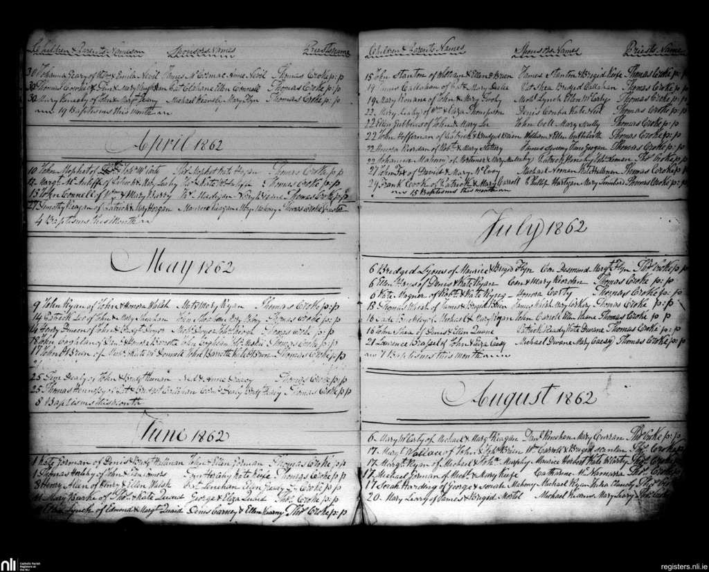 Charleville; County of Cork, Limerick; Diocese of Cloyne. Baptisms, Mar. 1862 to Aug. 1862