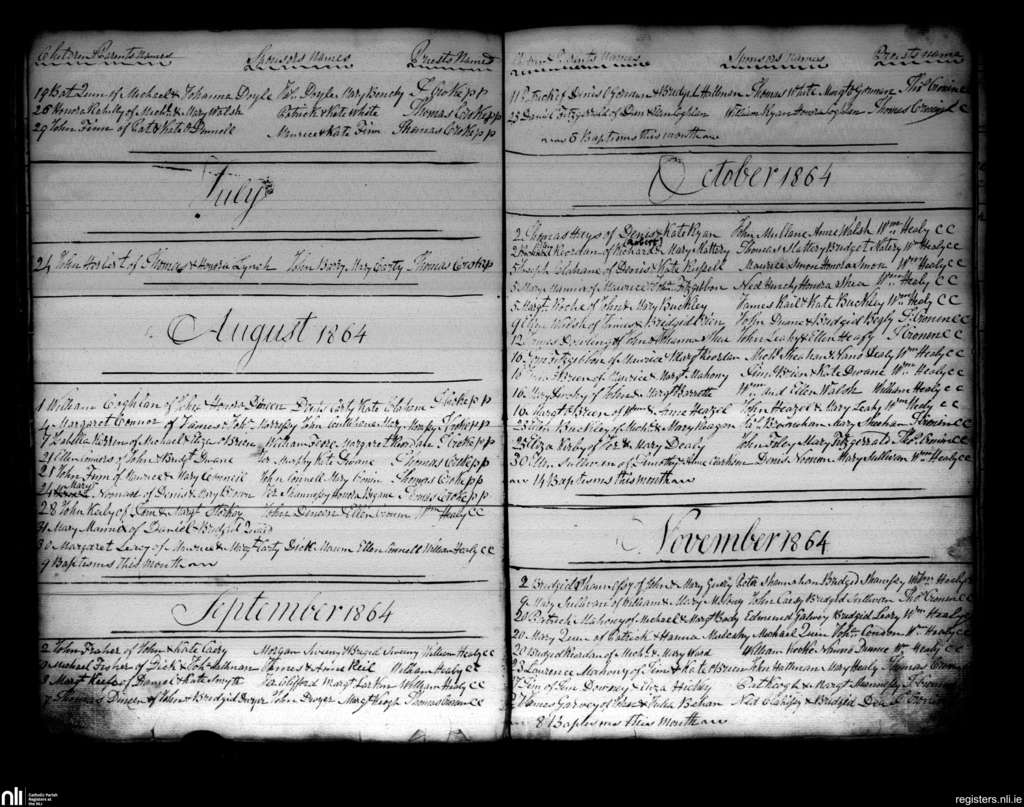 Charleville; County of Cork, Limerick; Diocese of Cloyne. Baptisms, June 1864 to Nov. 1864