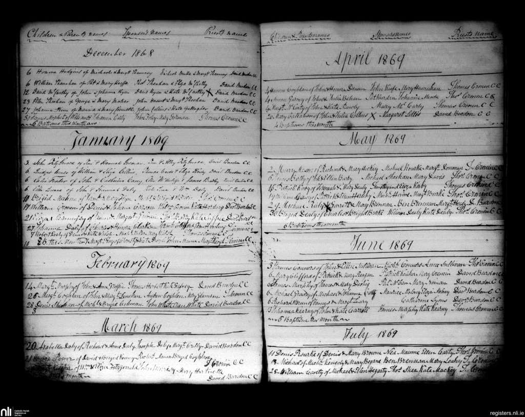 Charleville; County of Cork, Limerick; Diocese of Cloyne. Baptisms, Dec. 1868 to July 1869