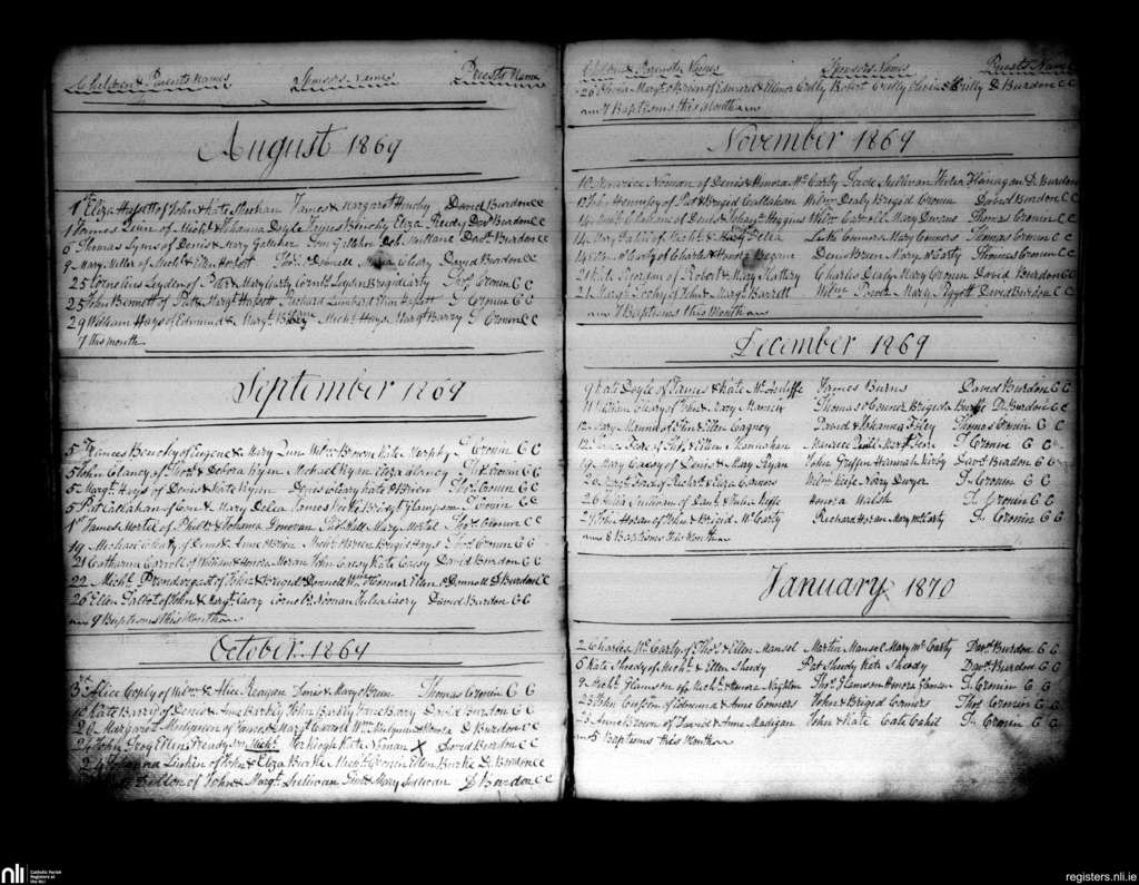 Charleville; County of Cork, Limerick; Diocese of Cloyne. Baptisms, Aug. 1869 to Jan. 1870