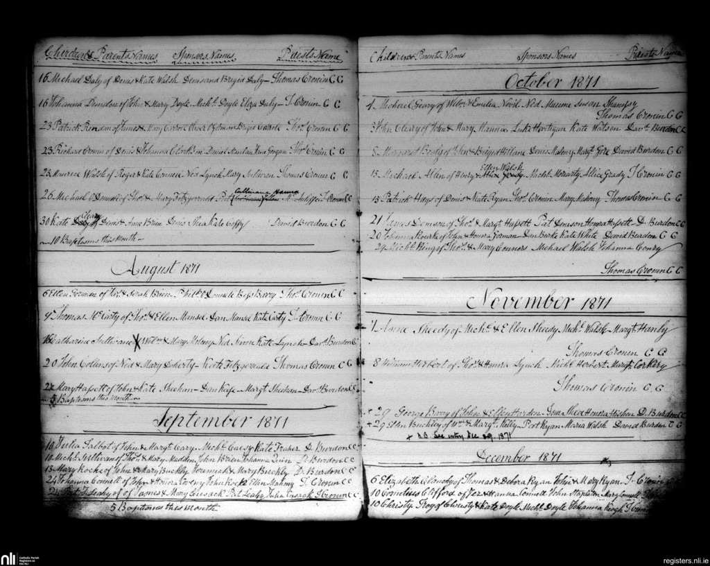 Charleville; County of Cork, Limerick; Diocese of Cloyne. Baptisms, July 1871 to Dec. 1871