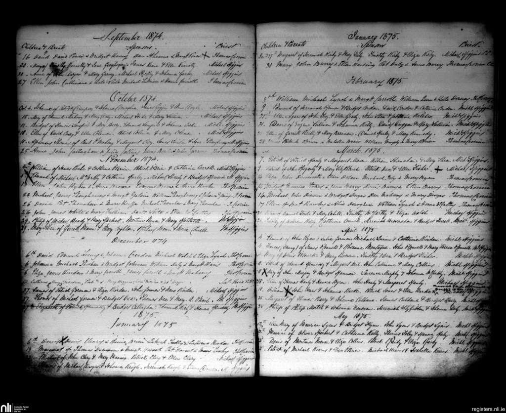 Charleville; County of Cork, Limerick; Diocese of Cloyne. Baptisms, Sep. 1874 to May 1875