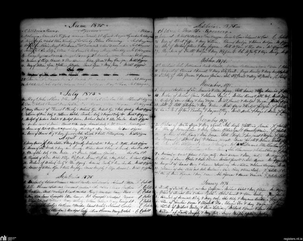 Charleville; County of Cork, Limerick; Diocese of Cloyne. Baptisms, June 1875 to Jan. 1876
