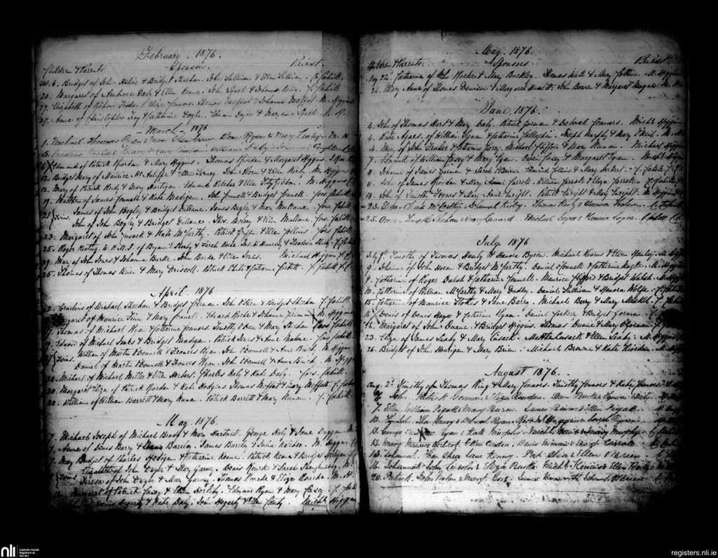 Charleville; County of Cork, Limerick; Diocese of Cloyne. Baptisms, Feb. 1876 to Aug. 1876