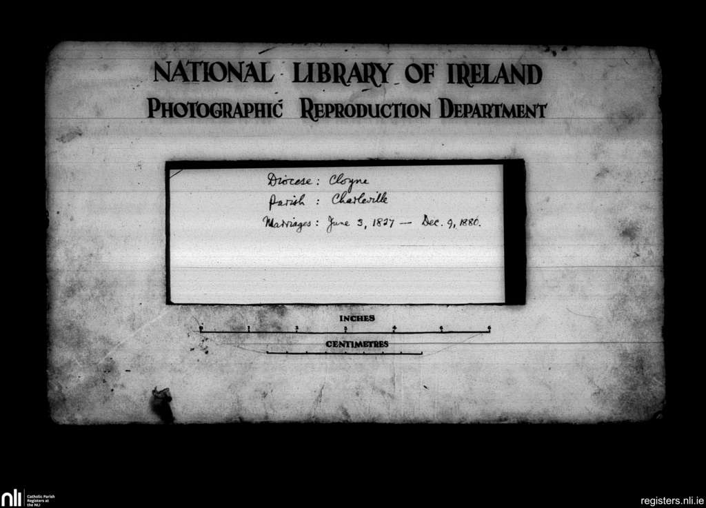 Charleville; County of Cork, Limerick; Diocese of Cloyne. Marriages