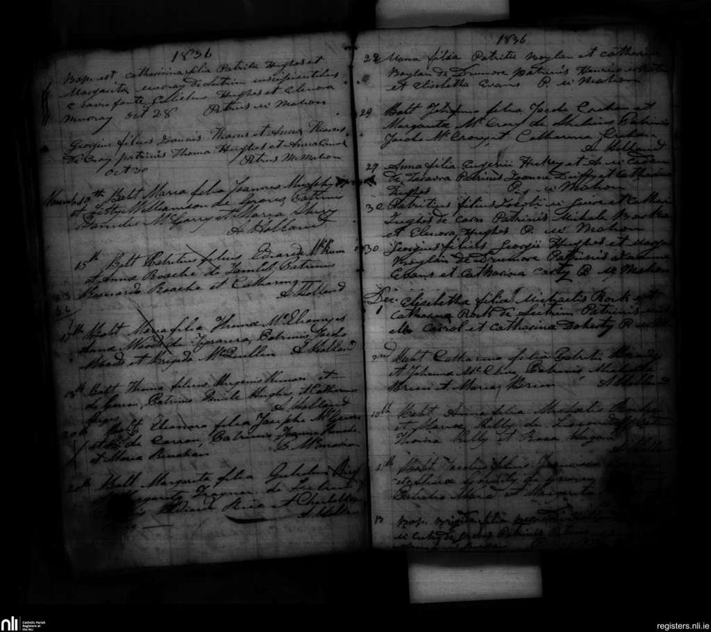 Tyholland; County of Monaghan; Diocese of Clogher. Baptisms, Oct. 1836 to Dec. 1836