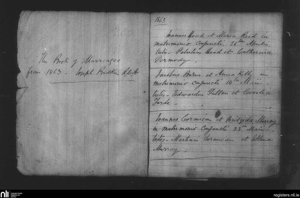 Mullagh; County of Galway; Diocese of Clonfert. Marriages, Apr. 1863 to May 1863