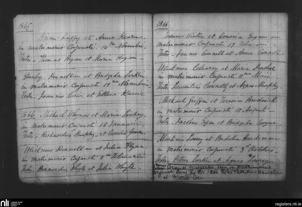 Mullagh; County of Galway; Diocese of Clonfert. Marriages, Nov. 1865 to Nov. 1866